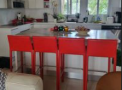 Las sillas altas rojas para comedor añaden un toque vibrante y moderno al espacio. Su diseño elevado, a menudo con un respaldo alto y patas largas, proporciona un estilo elegante y contemporáneo, ideal para mesas de bar o islas de cocina. El color rojo destaca como un punto focal en la decoración, aportando energía y un impacto visual llamativo al comedor.