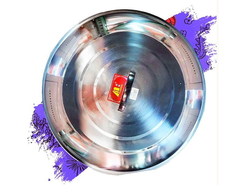 Tapadera de metal para tapar alimentos cocinados en un wok.