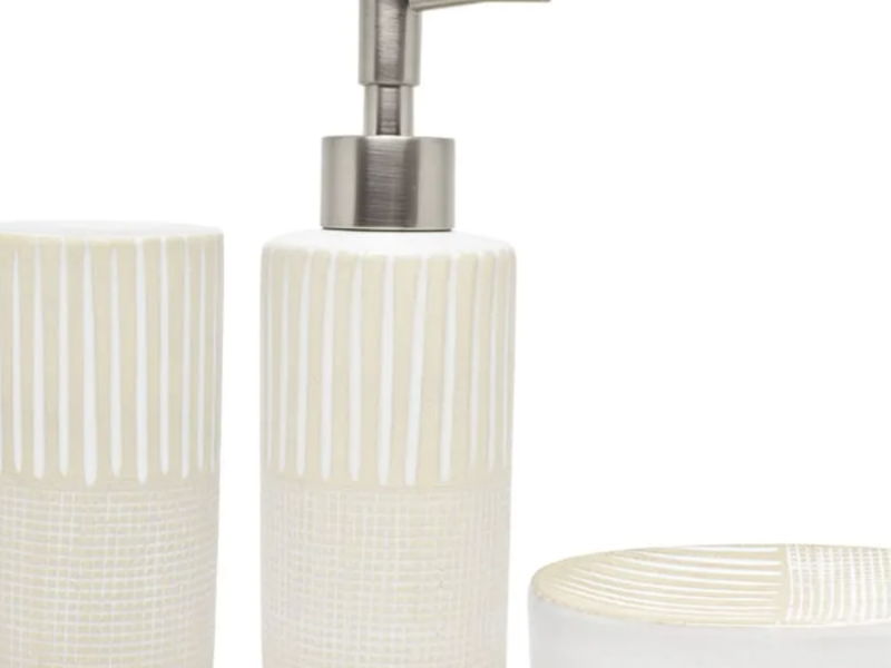 Set de baño de cerámica Zonana™ te ayudará a darle una apariencia más limpia y elegante a tu baño. Tiene un hermoso diseño texturizado con una combinación de franjas y cuadros sutiles sobre un fondo claro que le darán un ligero toque atrevido, pero elegante a cualquier tipo de decoración. Lo mejor de todo es que cada artículo está elaborado con cerámica de alta calidad que no solo durará por mucho tiempo, sino que también será muy suave al tacto.
