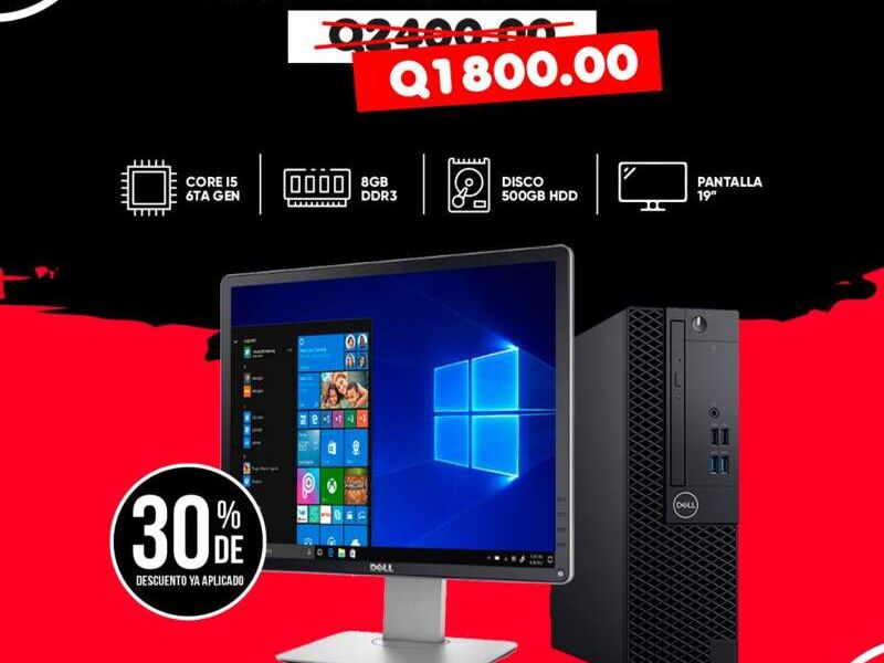 La computadora de escritorio DELL OptiPlex 3040, impulsada por un procesador Intel Core i5 de sexta generación, ofrece un rendimiento eficiente y confiable para una amplia gama de tareas informáticas. Con 8GB de memoria RAM, permite una multitarea fluida y ágil, lo que la hace ideal para usuarios que trabajan con aplicaciones exigentes. El disco duro de 500GB proporciona un amplio espacio de almacenamiento para documentos, archivos multimedia y programas. Además, su pantalla de 19" ofrece una visualización clara y detallada, lo que la hace adecuada para tareas de productividad y entretenimiento