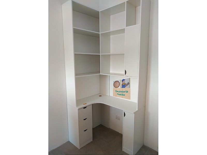 Escritorio Blanco Muebles diseñados para ofrecer un espacio de trabajo cómodo y organizado para una o más personas.
