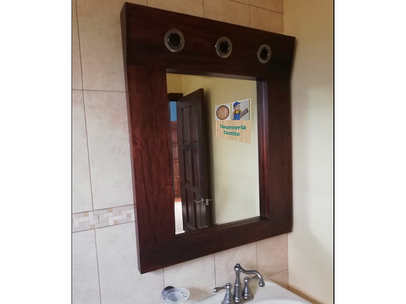 Espejo con marco de madera natural para baños y lugares comunes