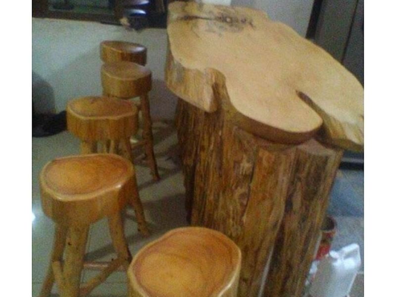 Comedor rústico hecho de madera natural.