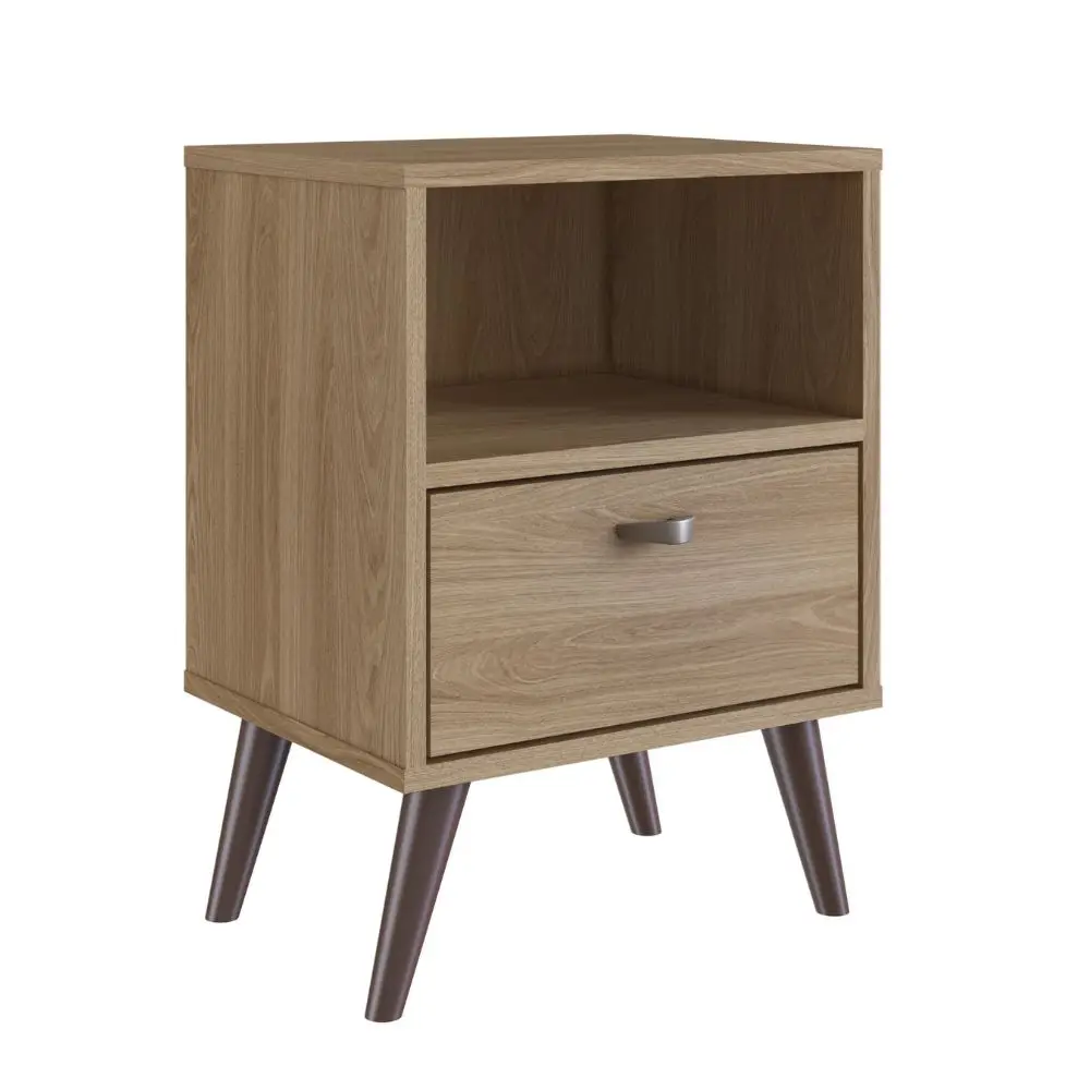 Construida con la durabilidad en mente, esta mesa de noche cuenta con patas robustas hechas de MDF, proporcionando una base estable para todos sus artículos. La superficie superior es ideal para una lámpara de lectura, su teléfono y un despertador. El diseño bien pensado combina la practicidad con un aspecto atemporal, asegurando que siga siendo un elemento básico en su hogar durante años.