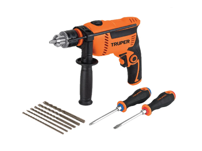 Combo de rotomartillo profesional con brocas y desarmadores.