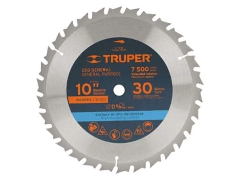 Disco sierra para madera 10", disponible con 30 o 60 dientes.