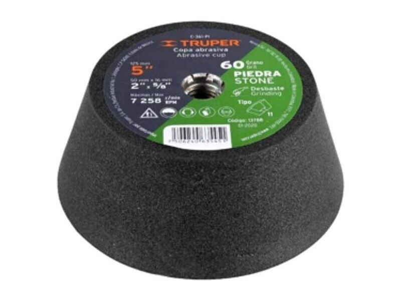 Copa de desbaste 5" para piedra, disponible en diferentes tipos de grano.