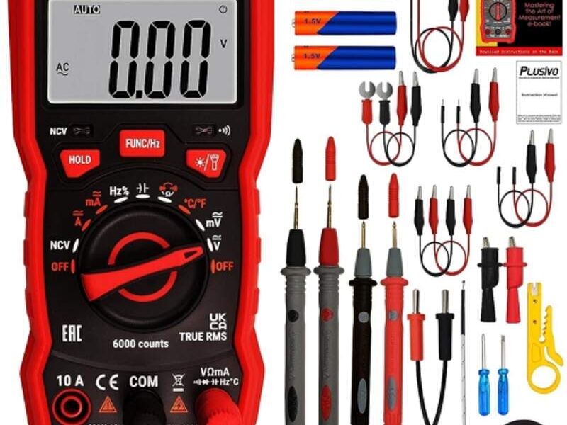 Multímetro 6000 cuentas multímetro digital rango automático TRMS AC DC Voltímetro Ohm Volt Amp NCV Diodo Tester; mide voltaje resistencia corriente temperatura frecuencia zumbador con cables de prueba, sondas