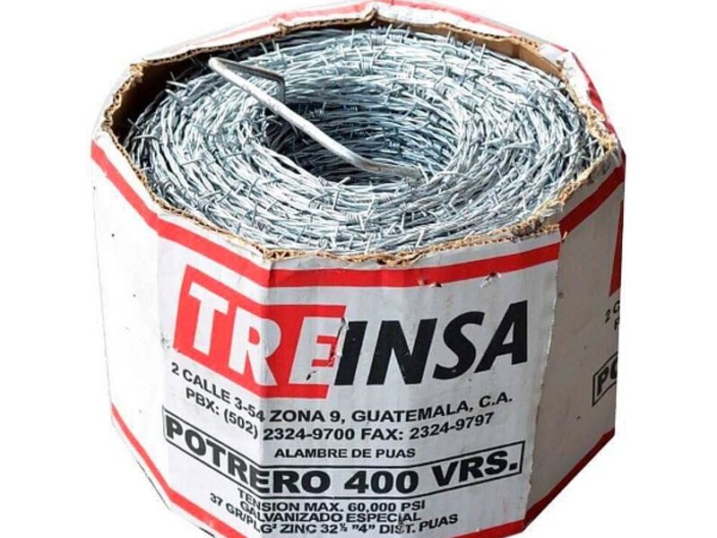 El alambre espigado o de púa está conformado por cuatro hilos, dos entorchados de alambre galvanizado.
