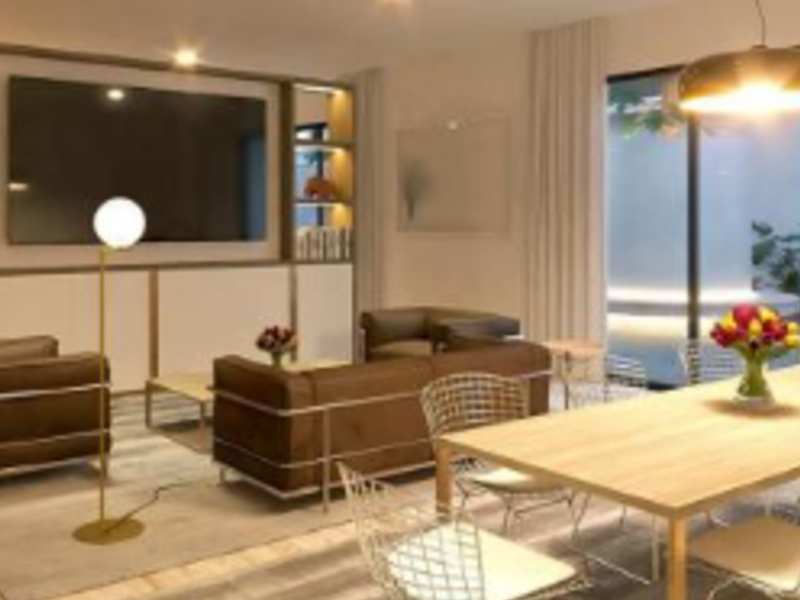 Disfruta de la vida en las alturas con este departamento en un piso alto que cuenta con un balcón privado y vistas impresionantes de la ciudad. Ideal para cenar al aire libre y disfrutar de las luces nocturnas.