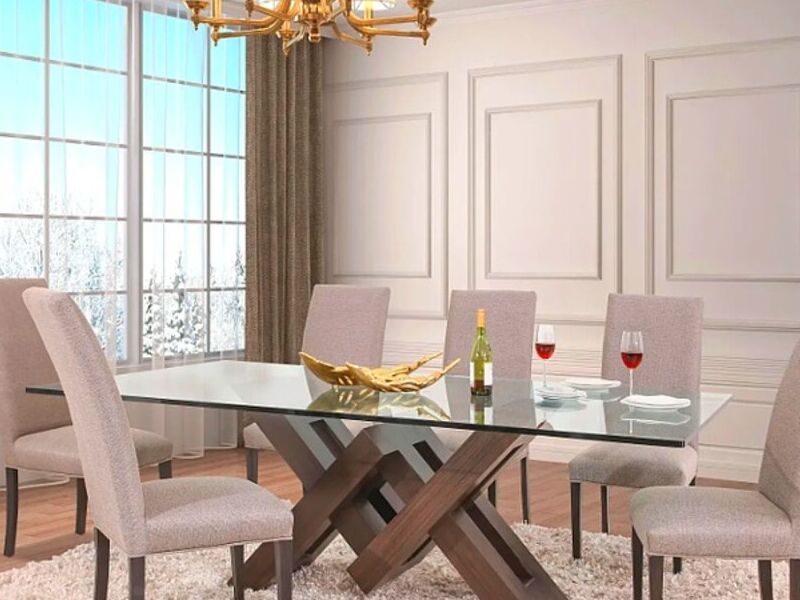 El comedor está fabricado en una base de madera sólida, la cual puedes personalizar en el tono que más te guste. Además, su cubierta de vidrio de 19 mm es perfecta para resaltar la belleza de la madera