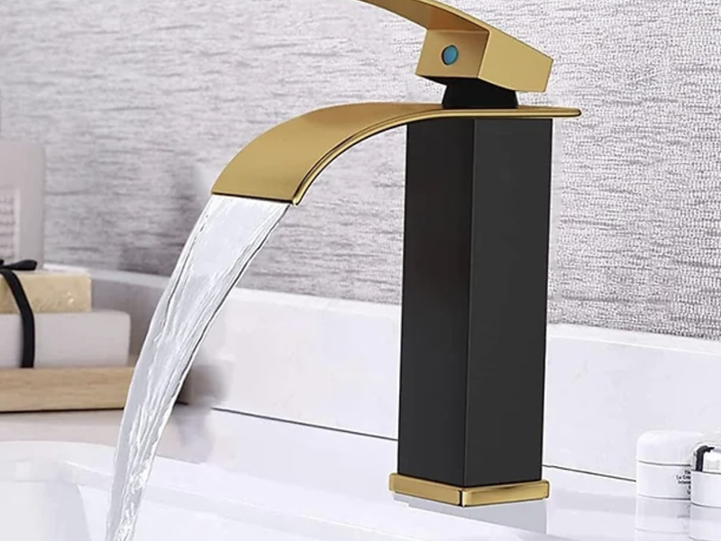 Grifería Lenna baja en bronce, monocontrol y acabado black - gold.