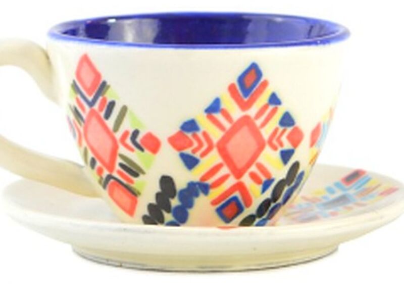 Tasa hecha de cerámica, de varios colores.