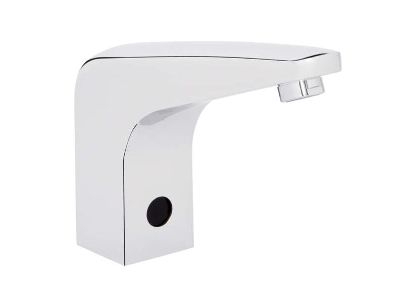 Llave de lavabo electrónica de sensor de corriente. Presión mínima recomendada 0.40kg/cm2. Consumo de agua máximo 1.5 L/min. Flujo Prisma. Acabado Cromo.