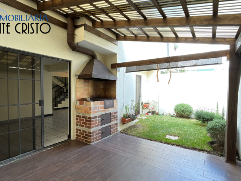 Jardín con pérgola y churrasquera
