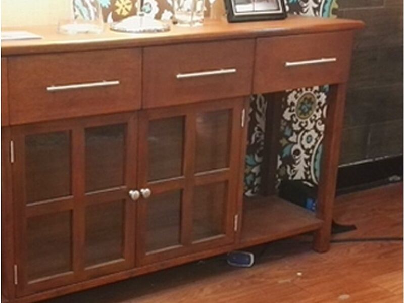 Fabricada en madera, 4 gabetas y 2 puertas de vidrio.