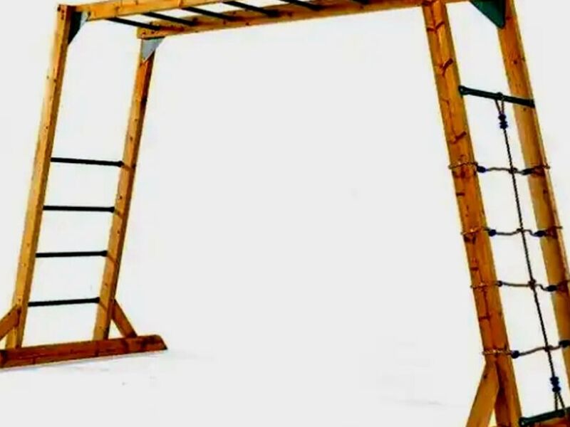 Postes con Escalones, Barras redondas madera impregnada (opcional de tubo hierro), Pequeña red de Lazo lateral, Escalones laterales