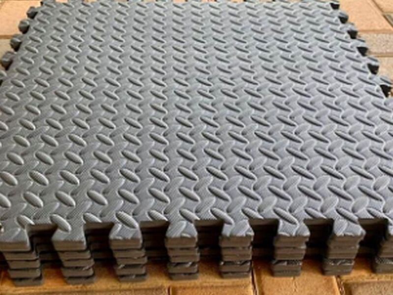 Una alfombra diseñada específicamente para actividades de ejercicio, generalmente hecha de materiales acolchados como espuma de alta densidad o caucho, que proporciona amortiguación y apoyo durante el entrenamiento.