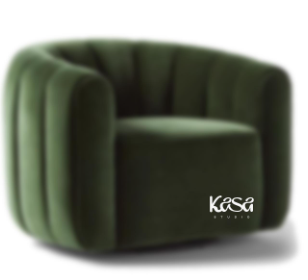 Sillón redondo de terciopelo verde, ideal para salas elegantes.