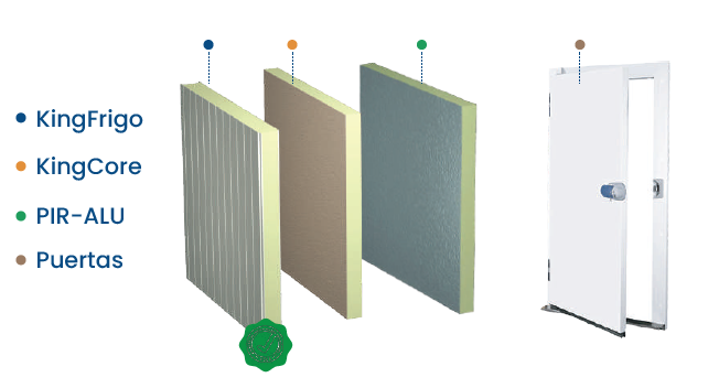 Sistema de paneles aislantes compuesto por soluciones KingFrigo, KingCore y PIR-ALU, junto con puertas especializadas, diseñado para aplicaciones que requieren alto control térmico. Ofrece excelente aislamiento, eficiencia energética y óptimo desempeño en ambientes controlados. Ideal para cuartos fríos, industria alimentaria y espacios que demandan conservación y seguridad térmica.