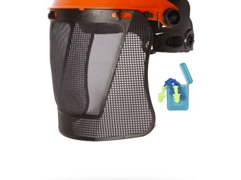 Conjunto integrado de protector facial y auditivo.