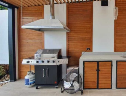 Su estructura es fabricada con block y el top es de concreto fundido, en cuanto a los acabado se puede optar por un microtopping cementicio para lograr un acabado de concreto expuesto, o un recubrimiento con un porcelanato altamente resistente y estético.
