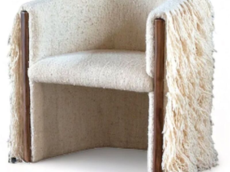 La silla Hilana Wool explora la funcionalidad, la forma y la artesanía. Artesanos de Momostenango, Guatemala, tejieron cada pieza en un telar de pedal usando lana hilada a mano. Cada pieza está tapizada en la ciudad de Guatemala, utilizando madera de pino.