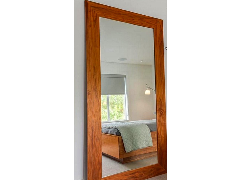 Espejo de piso con marco de madera.