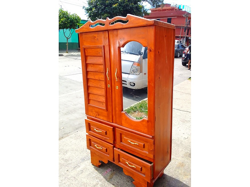 Ropero dos cuerpos, con espejo incorporado, de color cedro.
