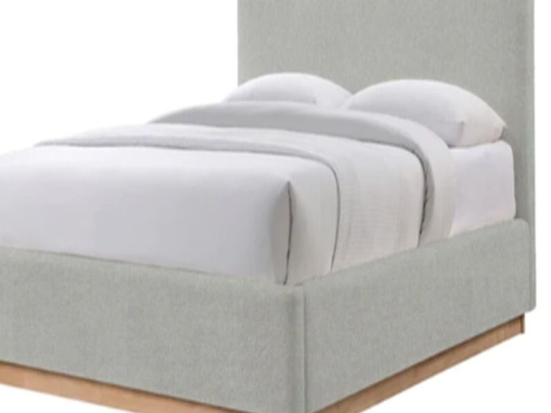 Tela gris claro Base madera roble Frente:200cms; Prof:204cms Colchon se vende por separado