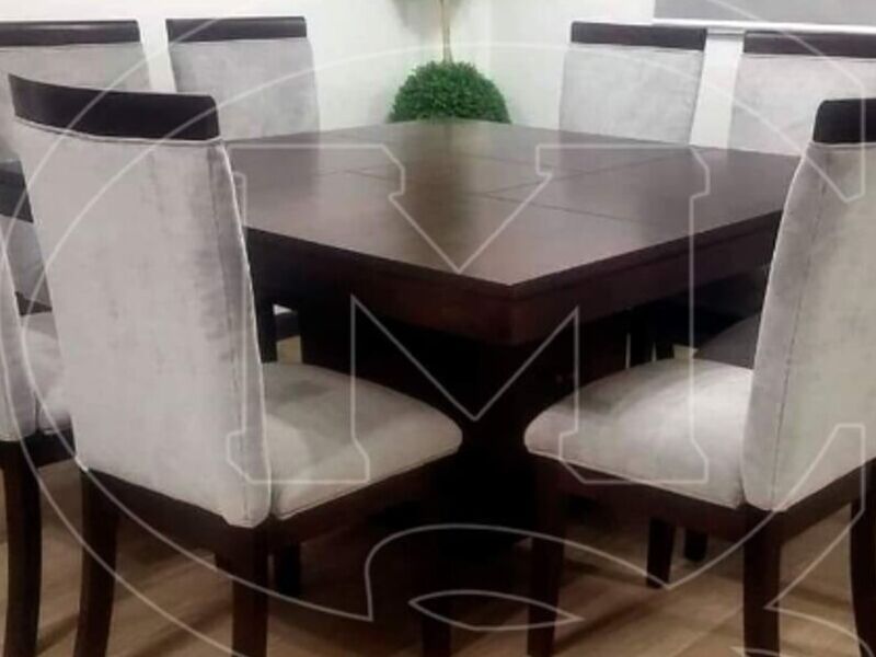 juego de comedor con 8 sillas blancas el juego es de madera ademas tenemos distintos diseños todos para tu elección.