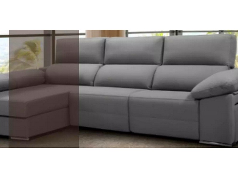 Sofá en L con baulera en color gris.