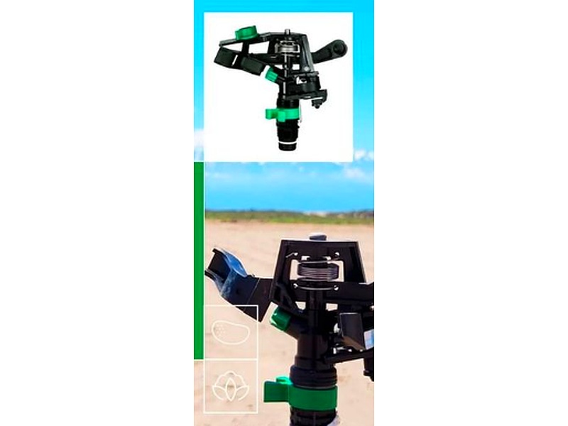 Aspersor de impacto de plástico reforzado, con alta resistencia a la corrosión, productos químicos y radiación UV.