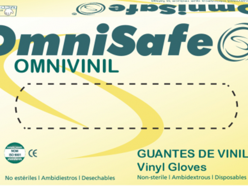 Tipo: No estéril con polvo y sin polvo. Material: Polivinilo Diseño y características: Ambidiestro, puños con reborde, de color transparente. Almacenamiento: Los guantes mantendrán sus propiedades si se guardan en lugar seco en una temperatura entre los 10° y los 30°C. Tiempo de conservación: 5 años desde la fecha de fabricación.