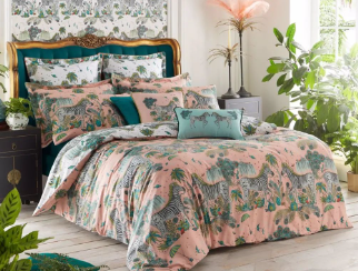 Cama con cojines acolchados en tonos grises, ideal para dormitorios modernos.