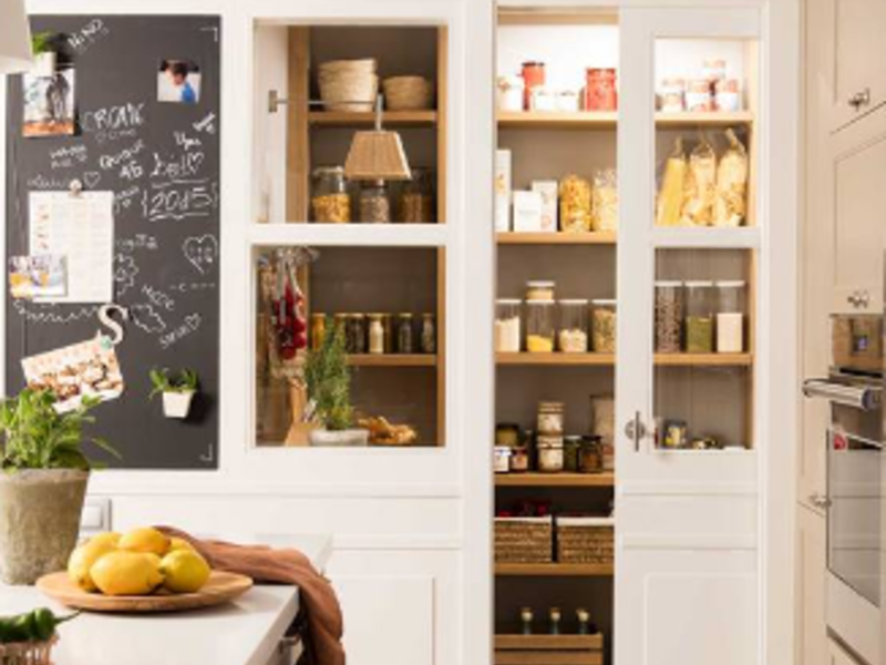 Las estanterías ajustables de nuestra despensa permiten adaptar el espacio a diferentes tamaños de alimentos y utensilios de cocina, brindándote la flexibilidad que necesitas.