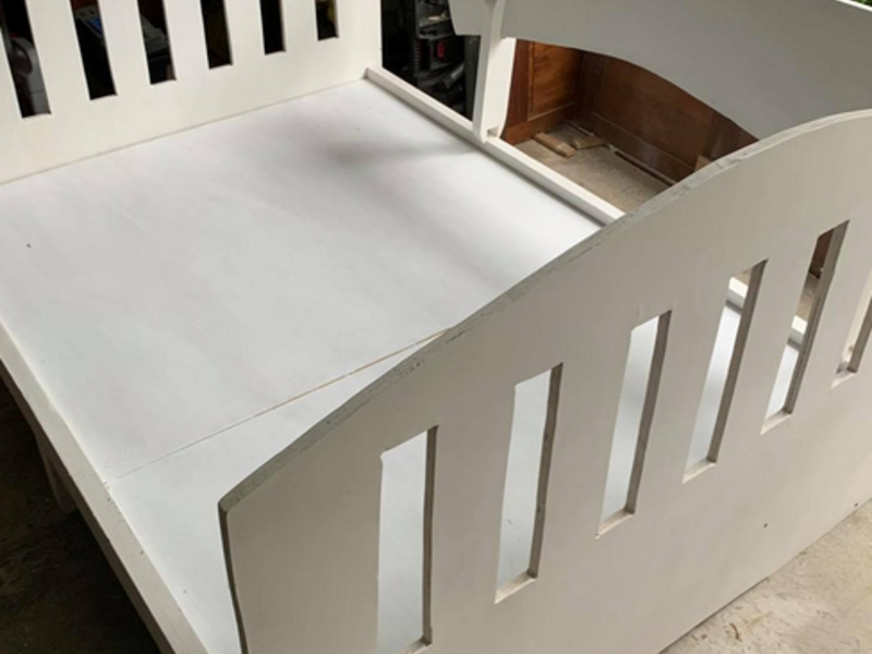 Camas de madera modernas en tonos claros de color blanco