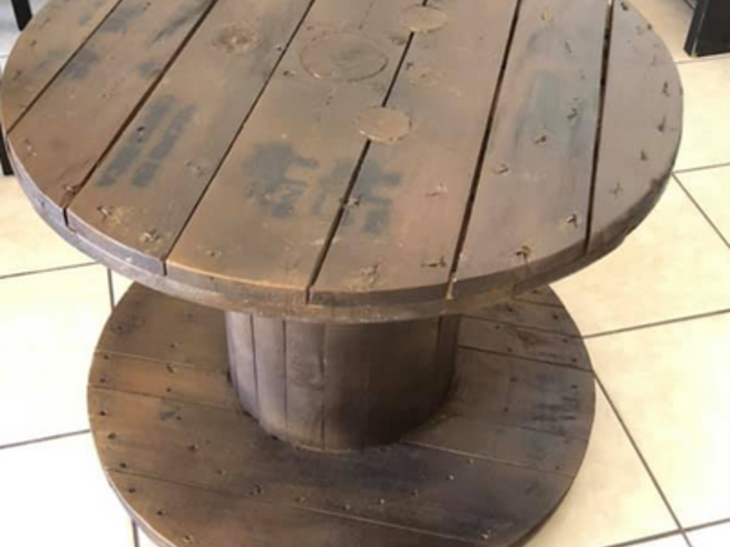 Mesas Circulares de madera en tonos oscuros
