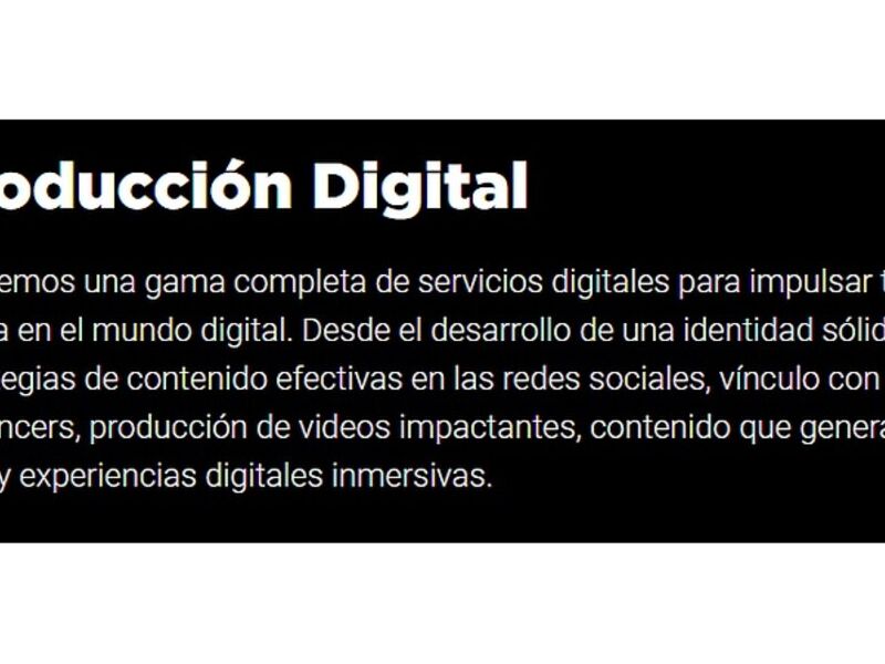 Ofrecemos una gama completa de servicios digitales para impulsar tu marca en el mundo digital. Desde el desarrollo de una identidad sólida y estrategias de contenido efectivas en las redes sociales, vínculo con influencers, producción de videos impactantes, contenido que genera valor y experiencias digitales inmersivas.