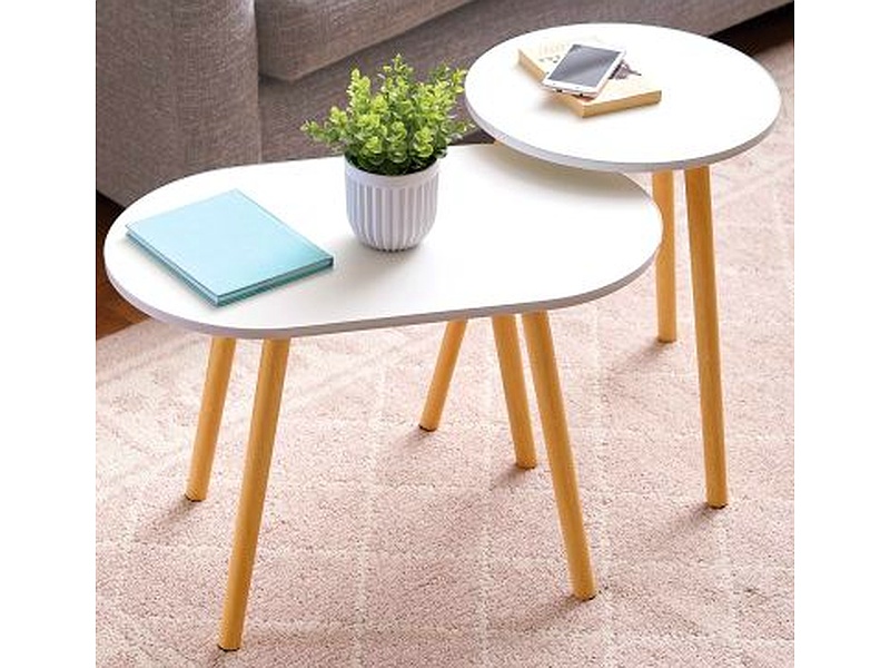 Mesas de centro de sala auxiliares, mesa blanco con patas color café claro.