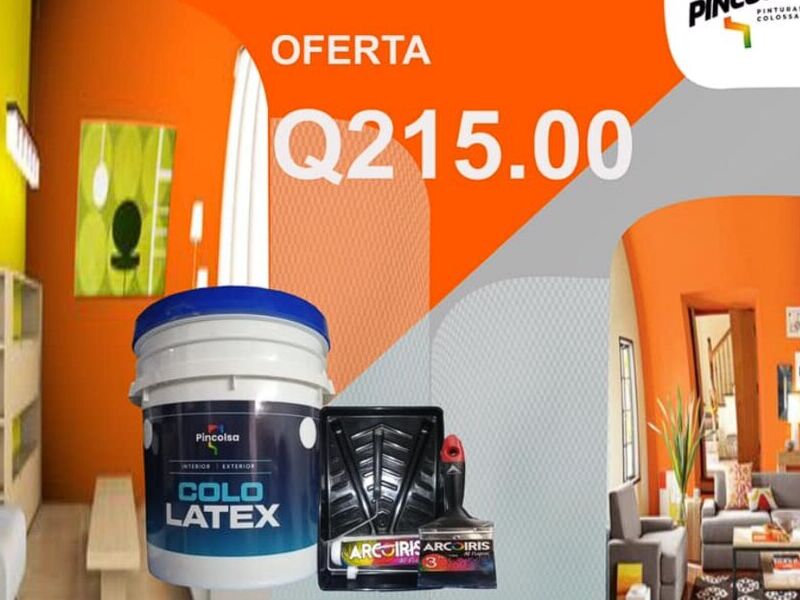 Un combo de cubeta de pintura de Latex, brocha y medidor de pintura ideal para iniciar el proyecto de remodelacion que esta esperando hacer desde hace tiempo.