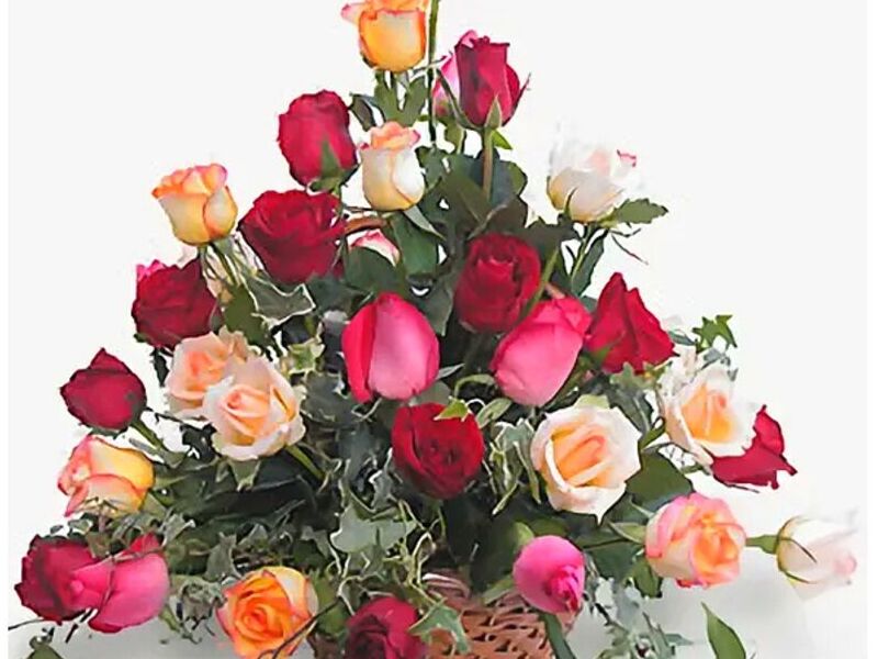 Grita a los 4 vientos cuán especial es tu prometida con esta hermosa y combinada canasta de Rosas en varios tonos de color.