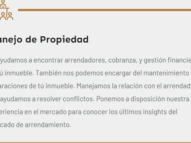 Te ayudamos a encontrar arrendadores, cobranza, y gestión financiera de tú inmueble. También nos podemos encargar del mantenimiento y reparaciones de tú inmueble. Manejamos la relación con el arrendador y te ayudamos a resolver conflictos. Ponemos a disposición nuestra experiencia en el mercado para conocer los últimos insights del mercado de arrendamiento.