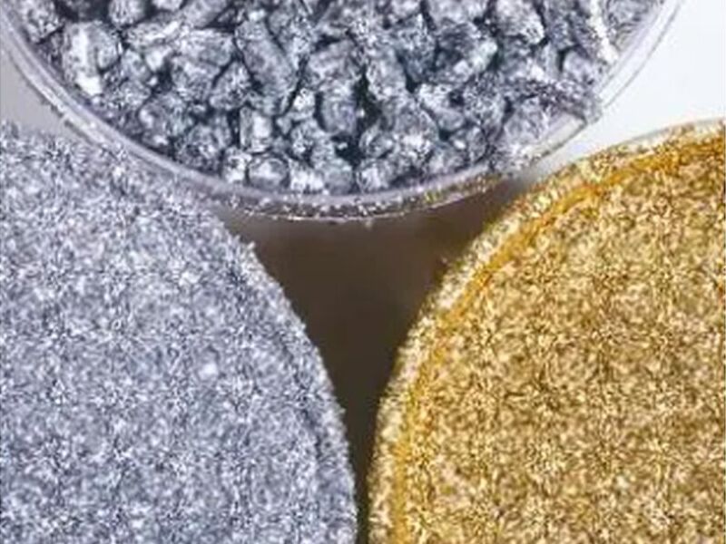 Los pigmentos metálicos se utilizan para crear efecto en forma de masterbatch o para colorear plástico. También en técnica de relieve para crear una imitación artística del metal.