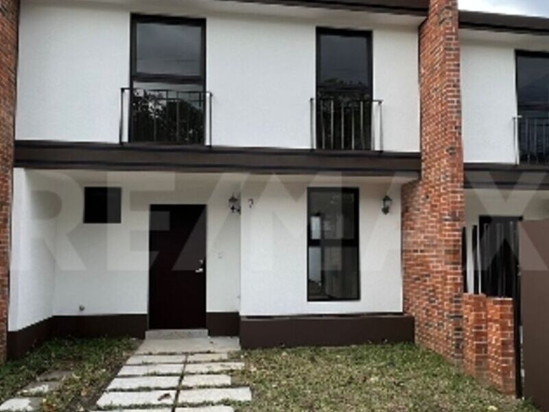 Acogedora casa de tres recámaras, dos baños, sala, comedor, cocina, área de lavado y jardín central.