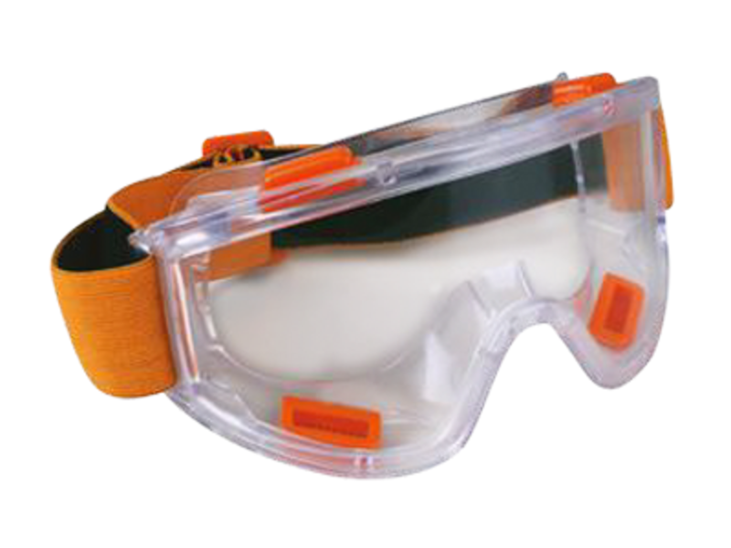 Diseñado con mica clara antiempaño, con 4 válvulas de ventilación indirecta, diseño panorámico 180°, correa elástica color naranja de 3.5 cms de ancho lo cual ofrece mayor ajuste, este goggle ofrece protección óptima a la salpicaduras de ciertos químicos y por su mica antiempaño se puede usar el procesos con presencia de calor o humedad.