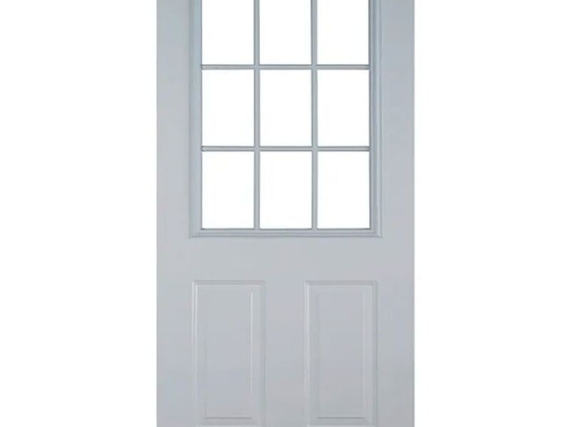 Vitral de PVC blanco con vidrio templado claro.