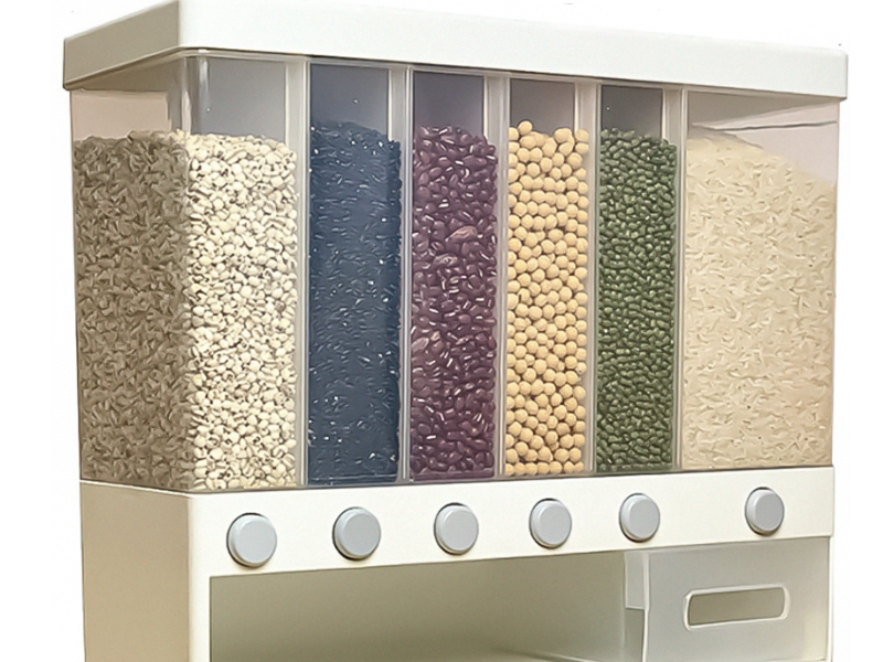 Este grandioso dispensador de granos cuenta con 6 rejillas de almacenamiento, perfecto para almacenar harina, azúcar, arroz, grano, frutos secos, aperitivos, pasta, café.