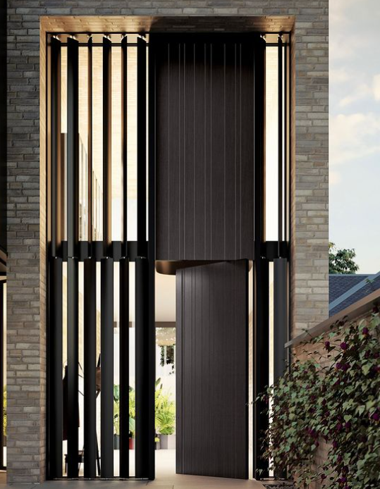 Panel de madera de estilo minimalista, usado para dividir espacios exteriores con un toque elegante y natural.