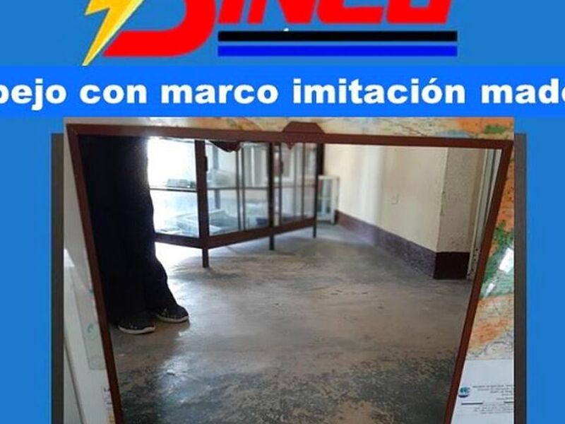 Espejo con marco de aluminio de imitación de madera.